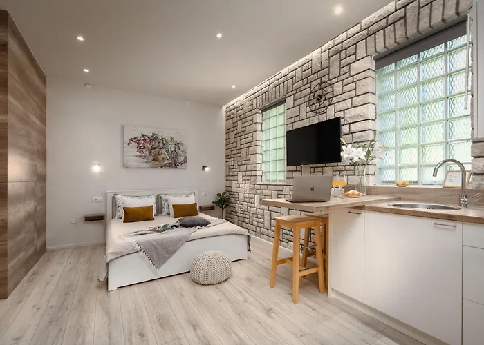 Luxe Studio Mr.M位于普拉,距离普拉机场有10公里,全场有免费无限网络. 它距离Pula Bus火车站550米,距离Starih Statuta公交车站450米.